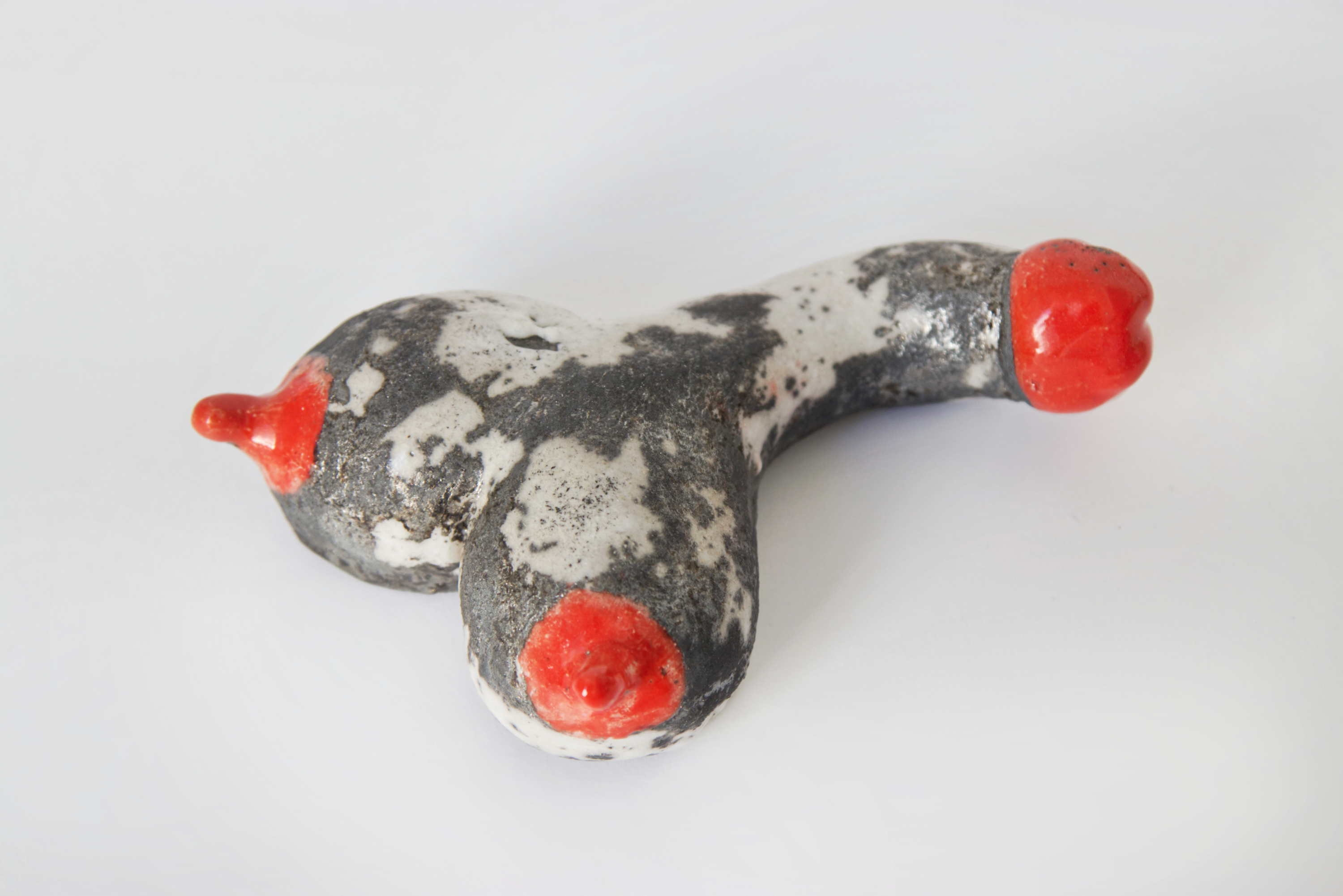 “Breasticles” is a sculpture that challenges gender norms and binaries. Depicting a penis that instead of testicles, has a pair of breasts attached, it discusses the dichotomy between the strength and power often associated with masculinity versus the weakness and passivity associated with femininity. It examines the lack of equality between males and females in our society, particularly through the use of language. For example, the phrase "to have balls" is often used to connote strength and courage, while the phrase "being a pussy" implies weakness and cowardice. This reinforces the idea that masculinity is equated with power, and femininity with weakness. Breasts are often seen as symbols of nurturing and motherhood, while the penis is associated with sexual desire and procreation. Yet, both organs are capable of producing fluids that are crucial for the continuation of life. By subverting traditional gender norms through the use of the penis and breasts in one sculpture, the work also addresses the topic of gender fluidity and marks a moment of transformation in our society. ‘Breasticles’ stands as symbol for taking action in dismantling gender-based discrimination and promoting equal opportunities for all, regardless of gender identity.
